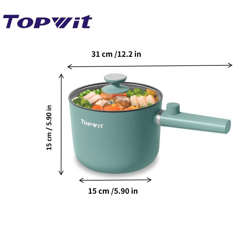 •【Dual Safety Protection】Equipped with the round-shaped embedded heating element technology, this ramen cooker can keep your food heated evenly and prevent the foods from burning. At the same time, Topwit electric hot pot has the over-heating protection and boil dry protection device, effectively protect the pot from overheating and continuously boiling when it is at a dry burning and overheating status.